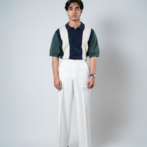 Premium Soft Textured Crewneck T-shirt in White with Thick Stripes