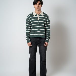 Premium Soft Textured Crewneck T-shirt in Dark Teal with Stripes
