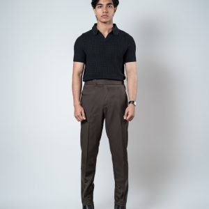 Men’s Dark Brown Classic Pleated Gurkha Pants with New Belt