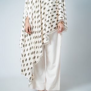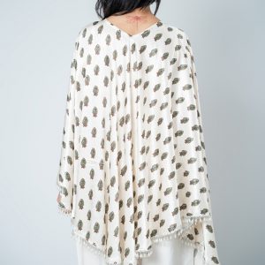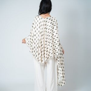 Designed with a focus on fluidity, the unique round silhouette features side openings where the hands emerge gracefully, highlighting the delicate hanging pearl tassels that add a touch of luxury. This versatile silhouette is thoughtfully crafted as a one-size-fits-all piece, ensuring a flattering & comfortable drape for every body type. Whether you’re lounging or out on the town, the fusion of comfort and high fashion makes this Artistic Printed Kaftan in Off White an essential wardrobe staple. Pair it with sidekick pants for a modern ethnic look. Step into a world where heritage meets modern style.