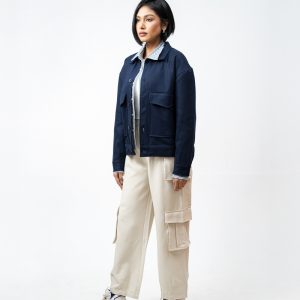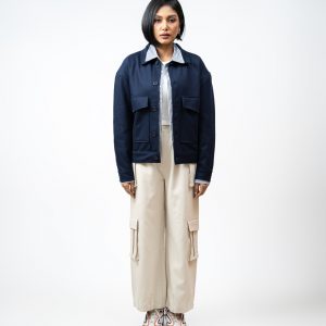 Meet the jacket that does it all, now in essential black. The Boxy Jacket in Navy Blue by Gorur Ghash is the ultimate layer. It’s crafted from a seriously thick wool-blended cotton, giving it the structure and weight to handle city weather. The fit is intentionally boxy and unisex, creating a sharp, modern silhouette that layers well over anything.