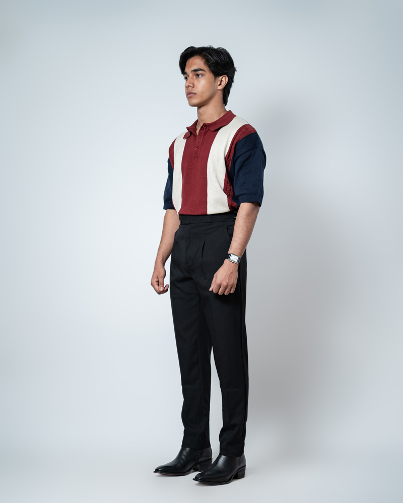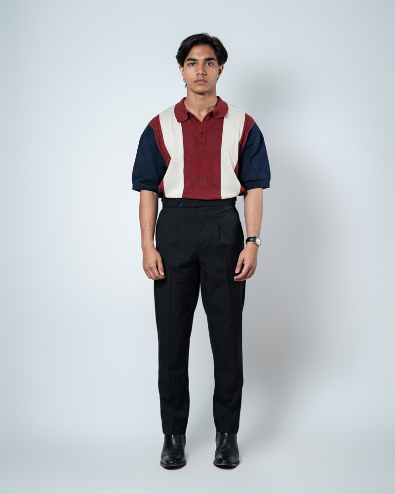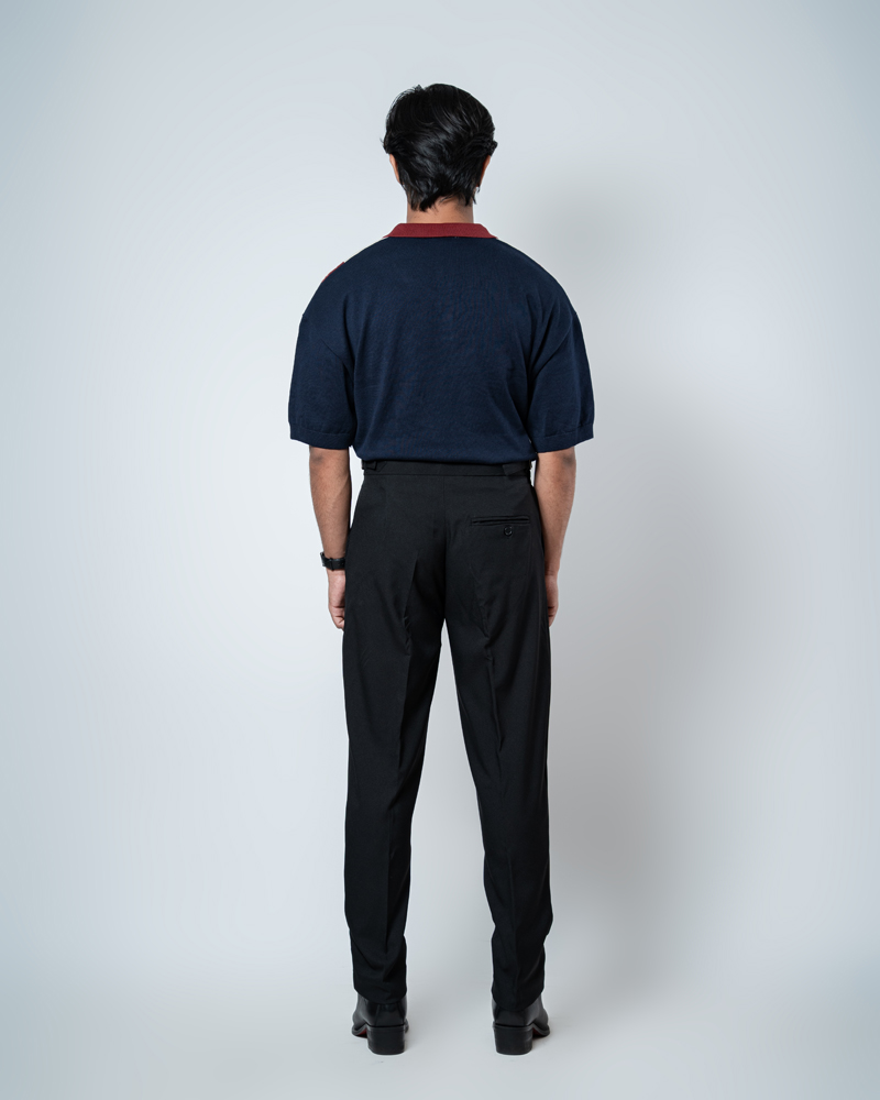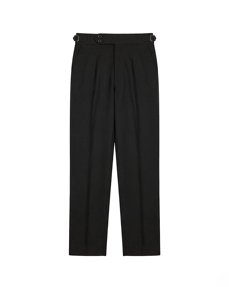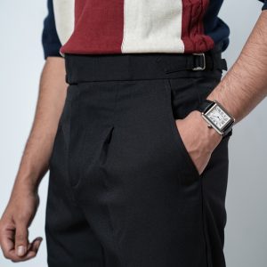 The standout feature of these redesigned Gurkha pants is the more prominent pleats, adding a distinguished touch that sets them apart from ordinary formal trousers. These defined pleats not only enhance the visual appeal but also allow greater ease of movement. The adjustable waistband, paired with the newly extended belt, ensures a personalized fit, offering both style and practicality. Our updated straight-fit design strikes the perfect balance between modern and classic, making these pants versatile enough to pair with a wide range of shirts and polos. The black color adds a refined, neutral tone that complements any wardrobe, giving you endless styling possibilities.