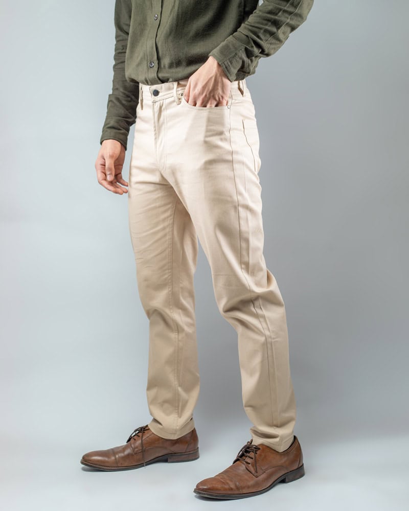 Crafted with meticulous attention to detail, these gabardine pants offer exceptional comfort and durability. The high-quality fabric ensures a soft touch against your skin while maintaining its structure and shape, even with regular wear. The classic cream color adds a touch of sophistication, making them a versatile choice for both formal and informal settings. Featuring a regular-fit silhouette, these pants strike the perfect balance between comfort and style. The relaxed cut provides ample room for movement, allowing you to go about your day with ease. Whether you’re running errands, meeting friends, or simply enjoying a leisurely weekend, these pants offer the perfect combination of comfort and style. Designed for practicality, our Men’s Casual Regular-fit Gabardine Pants in Cream come with multiple pockets, ensuring you have enough storage space for your essentials. From your wallet to your keys and even your smartphone, everything has a designated place, keeping your belongings secure and easily accessible.