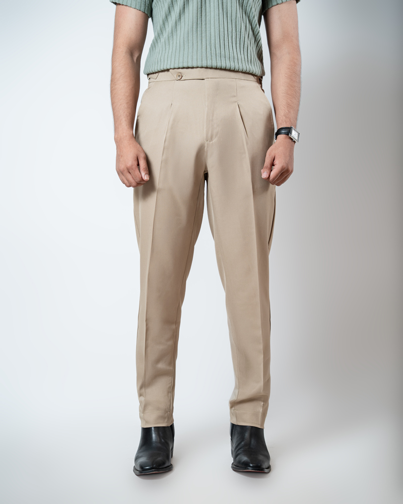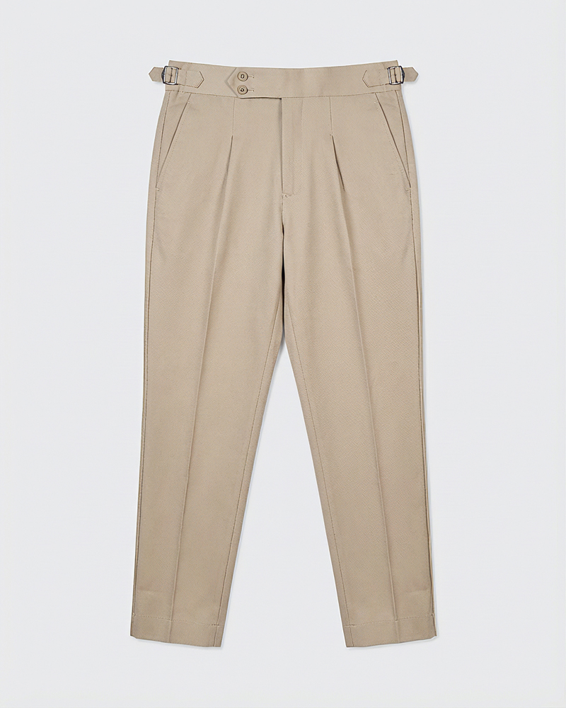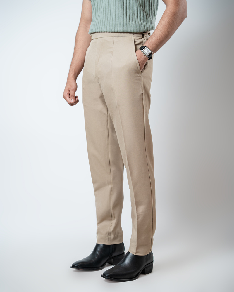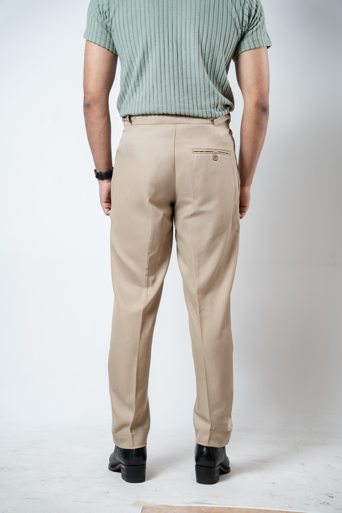 The standout feature of these redesigned Gurkha pants is the more prominent pleats, adding a distinguished touch that sets them apart from ordinary formal trousers. These defined pleats not only enhance the visual appeal but also allow greater ease of movement. The adjustable waistband, paired with the newly extended belt, ensures a personalized fit, offering both style and practicality. Our updated straight-fit design strikes the perfect balance between modern and classic, making these pants versatile enough to pair with a wide range of shirts and polos. The cream color adds a refined, neutral tone that complements any wardrobe, giving you endless styling possibilities.