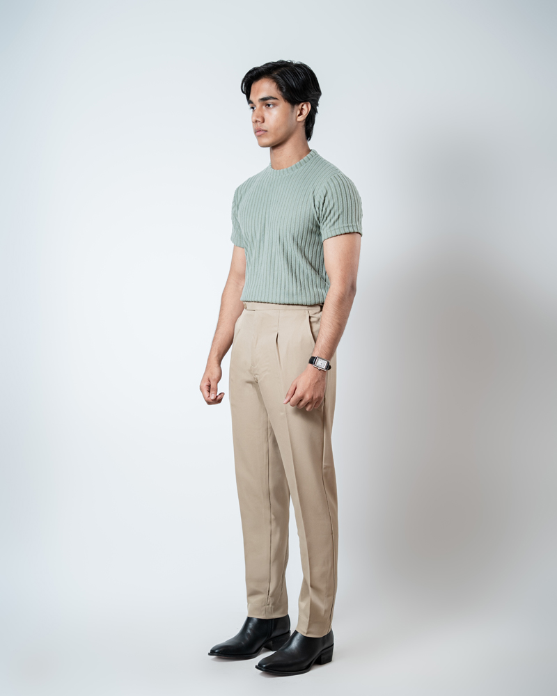 Experience the perfect combination of elegance, comfort, and style with the Men’s Cream Classic Pleated Gurkha Pants with New Belt. Elevate your formalwear game with pants that deliver a crisp, sharp look and unparalleled comfort. Redefined, reimagined, and ready to make a statement — these Gurkha pants are a must-have for the modern gentleman. Available in 5 sizes (S, M, L, XL & XXL) for men on Gorur Ghash’s Facebook and Instagram account and website. Proudly Made in Bangladesh (BD)!