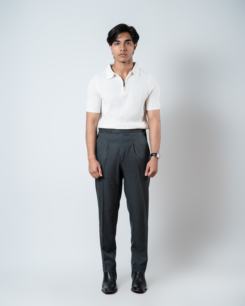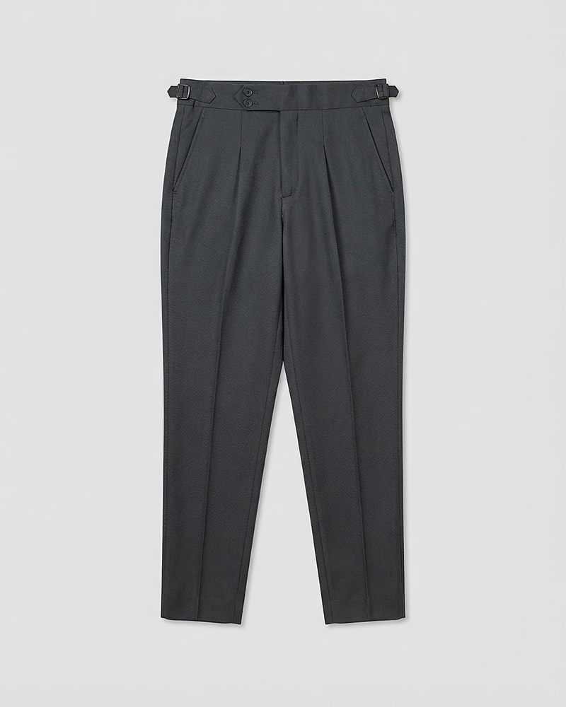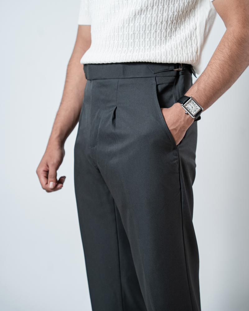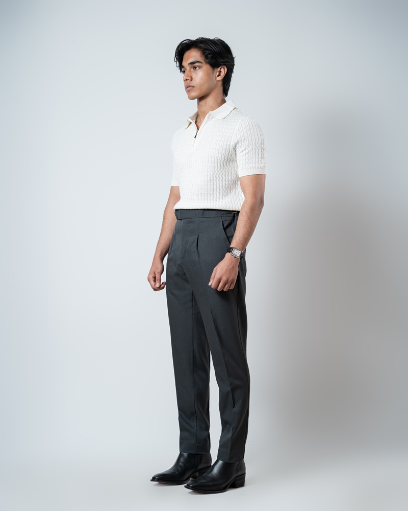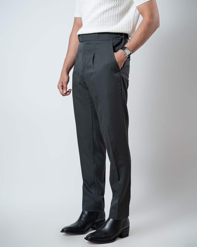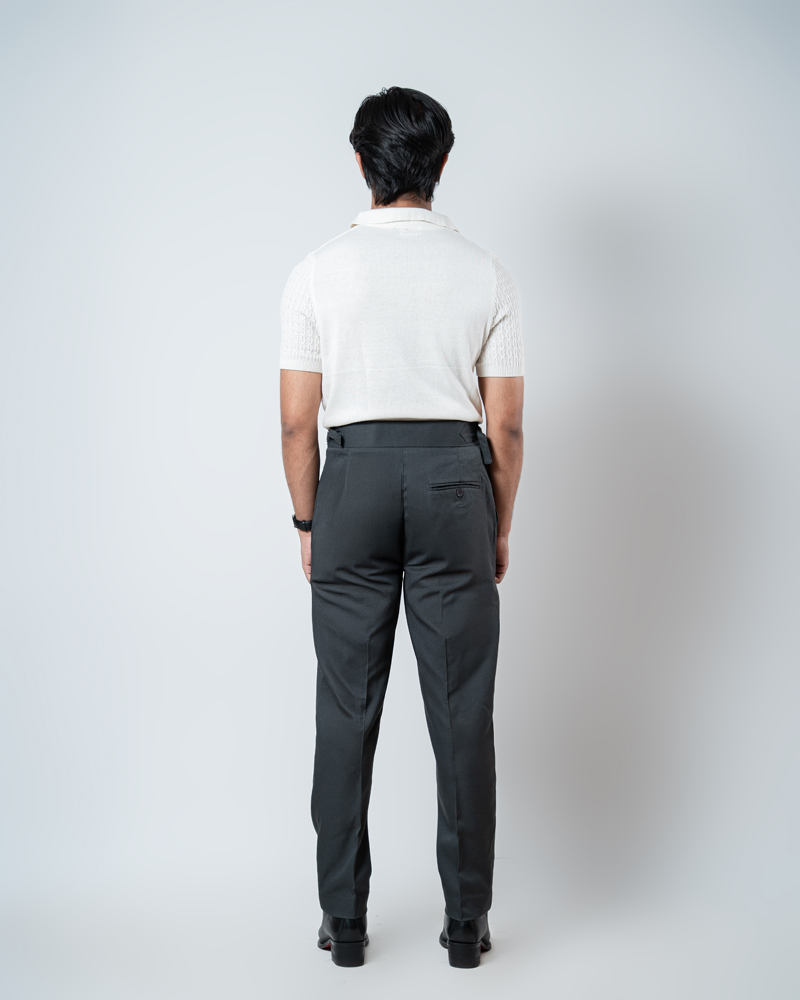 The standout feature of these redesigned Gurkha pants is the more prominent pleats, adding a distinguished touch that sets them apart from ordinary formal trousers. These defined pleats not only enhance the visual appeal but also allow greater ease of movement. The adjustable waistband, paired with the newly extended belt, ensures a personalized fit, offering both style and practicality. Our updated straight-fit design strikes the perfect balance between modern and classic, making these pants versatile enough to pair with a wide range of shirts and polos. The light grey color adds a refined, neutral tone that complements any wardrobe, giving you endless styling possibilities.