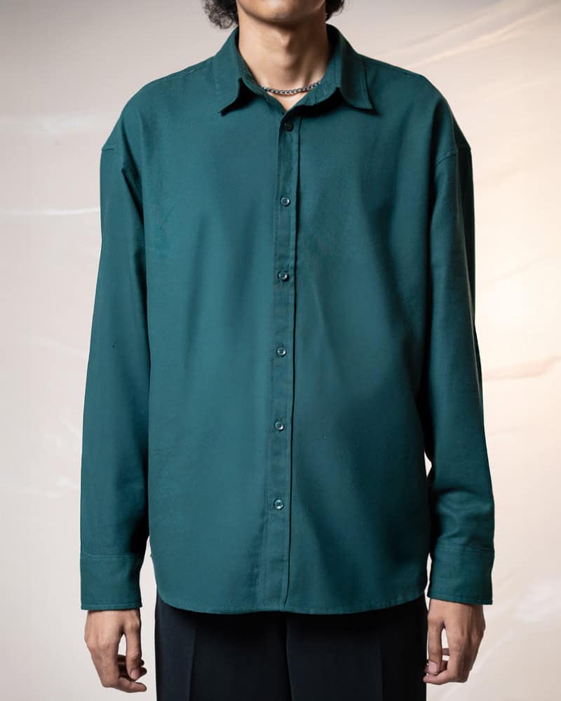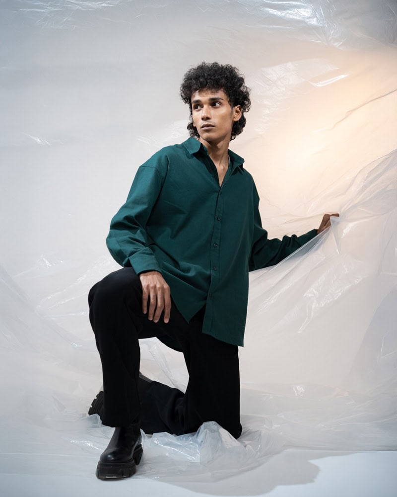 The shirt features a clean front with a full set of buttons — minus the stiff, formal collar. That’s right, no button-down collar drama here — just a relaxed neckline that keeps things effortlessly cool. The bottle green color adds a calm, versatile vibe that pairs well with just about everything in your wardrobe. Style it tucked, untucked, or half-tucked — the Oversized Shirt doesn’t mind. Pair it with your favorite jeans, cargos, or even lungis for that laid-back, put-together look. Basically, if you’re someone who likes big fits and even bigger style, this shirt was quite literally made for you. Go Oversized or go home.