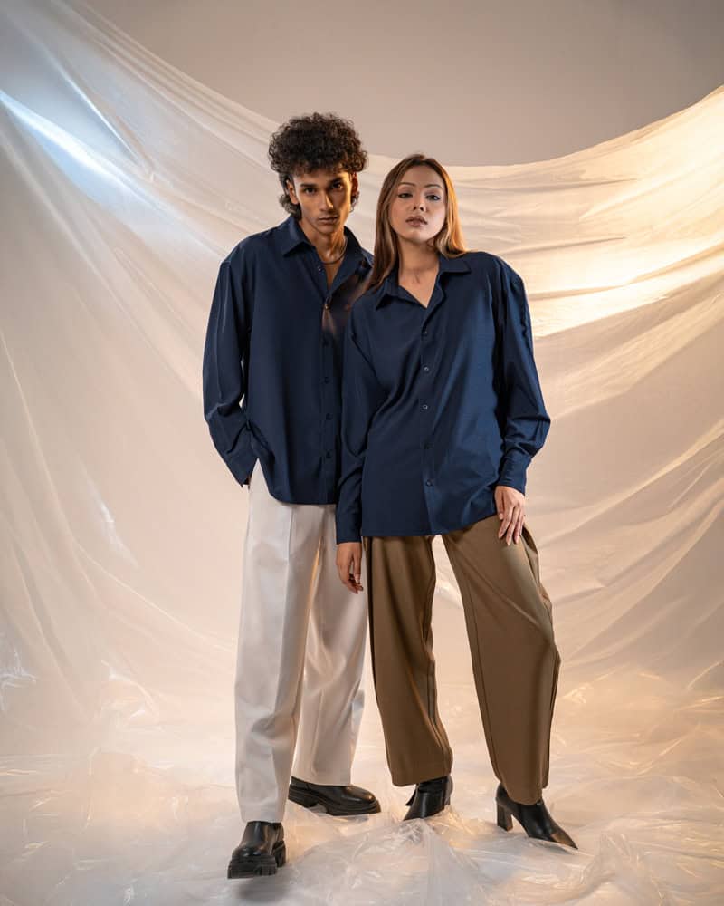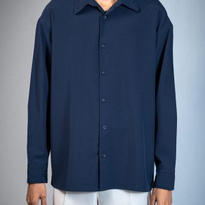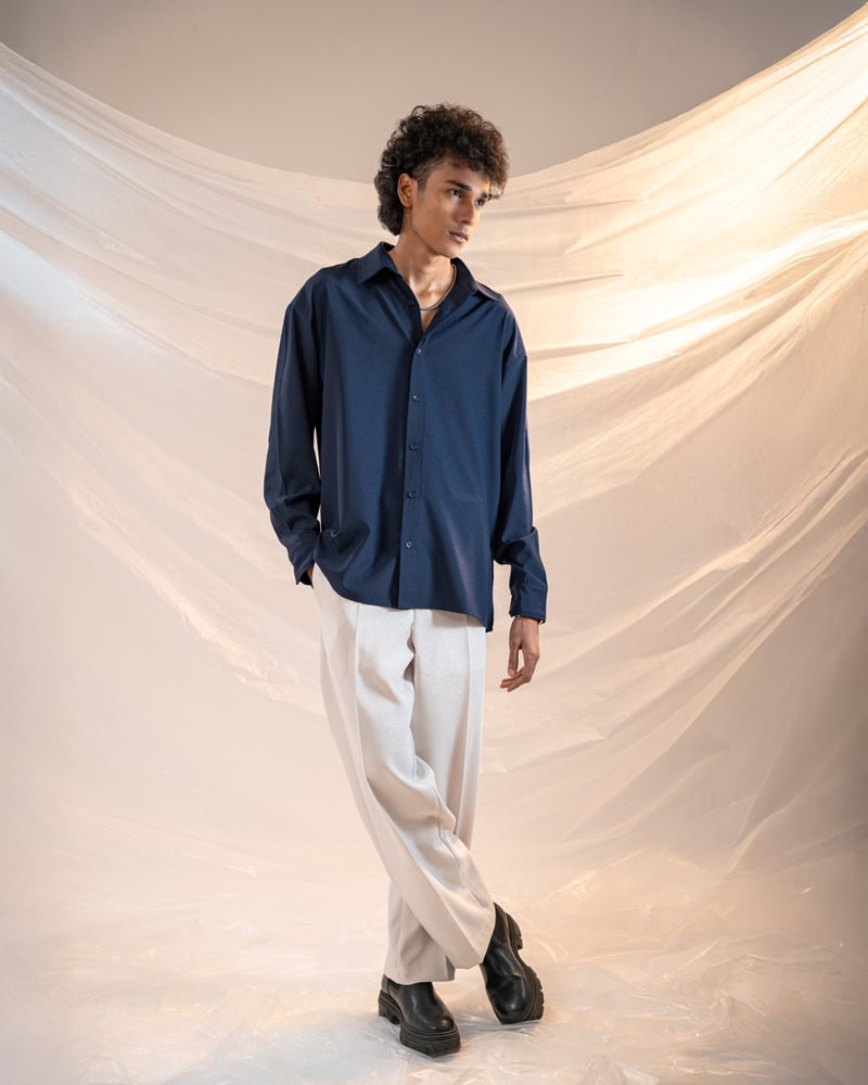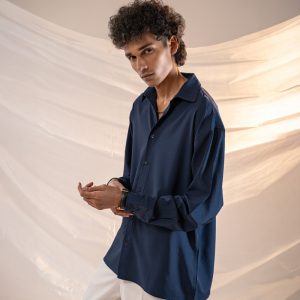 Made from microstitch polyester (fancy talk for “feels smooth and breathable”), this shirt doesn’t just look good—it moves with you. It’s stretchable, which means you can reach for that last slice of pizza or wave at someone from across the street without feeling like you’re trapped in a fashion prison. Light, flowy, and breathable—this is the shirt your summer wardrobe has been dreaming of. And yes, it’s oversized—because fitted shirts are great until you want to actually breathe. The roomy cut gives you that relaxed, effortlessly stylish look while keeping things classy. No clinging, no pulling—just pure, breezy confidence. The solid navy blue color and smooth finish give it a touch of refinement, making it perfect for casual days, work-from-café hours, or even a date where you want to look like you made an effort (without really making one).