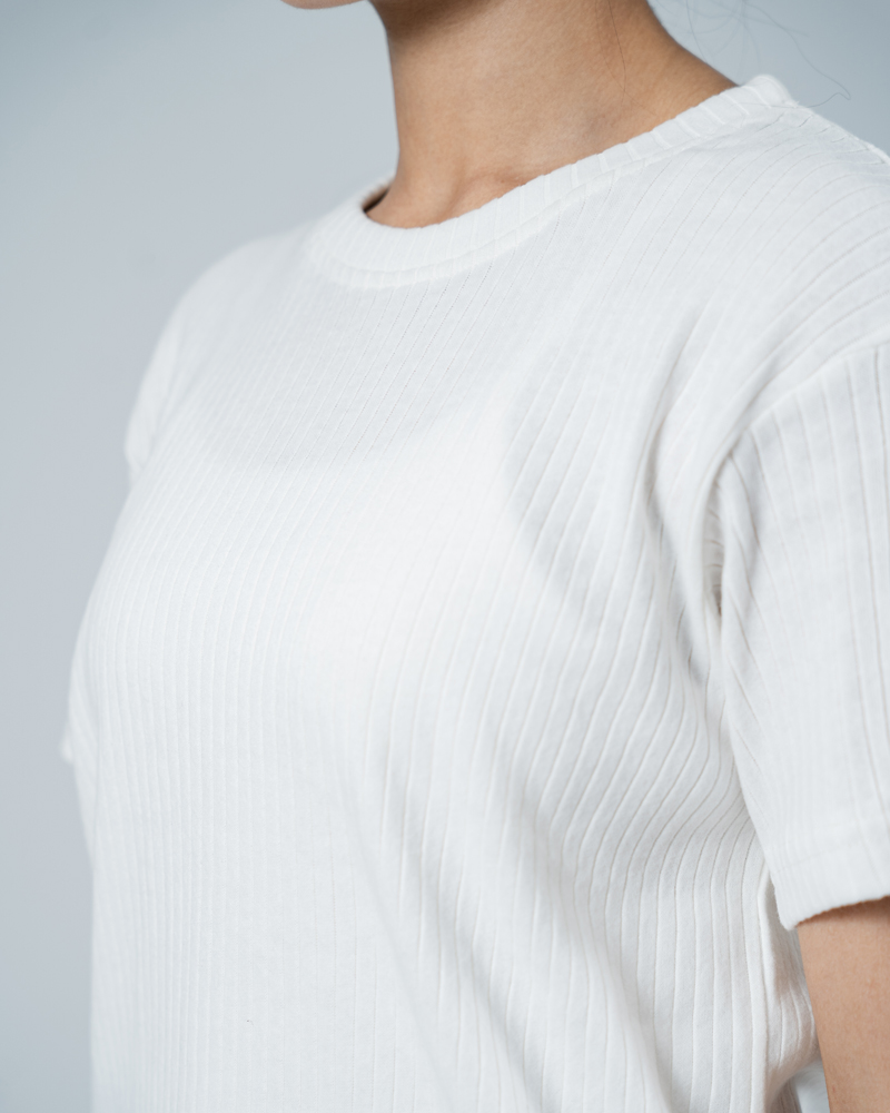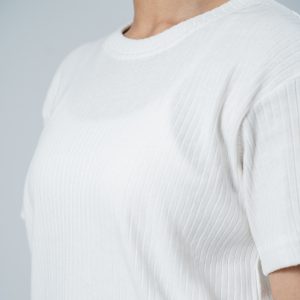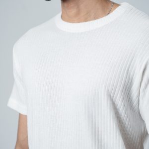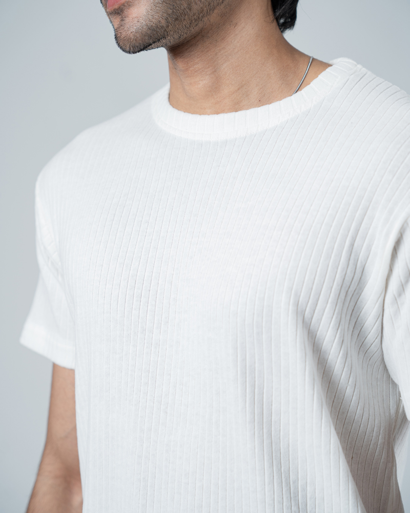 Premium Soft Textured Crewneck T-shirt in White with Thick StripesPremium Soft Textured Crewneck T-shirt in White with Thick Stripes