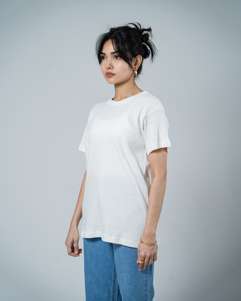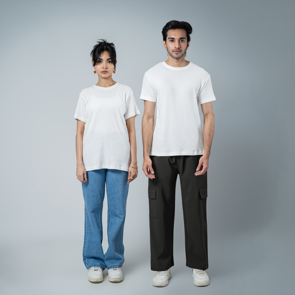 Keep your summer wardrobe clean and effortless with the Premium Soft Textured Crewneck T-shirt in White with Thick Stripes by Gorur Ghash. Designed in a unisex regular fit, it offers a neat, modern silhouette that pairs perfectly with jeans, shorts, or layered streetwear looks. The classic White color combined with subtle thin stripes adds understated style, making it versatile enough for casual outings, weekend adventures, or everyday wear. Its minimal design ensures a polished, contemporary look without sacrificing ease.
