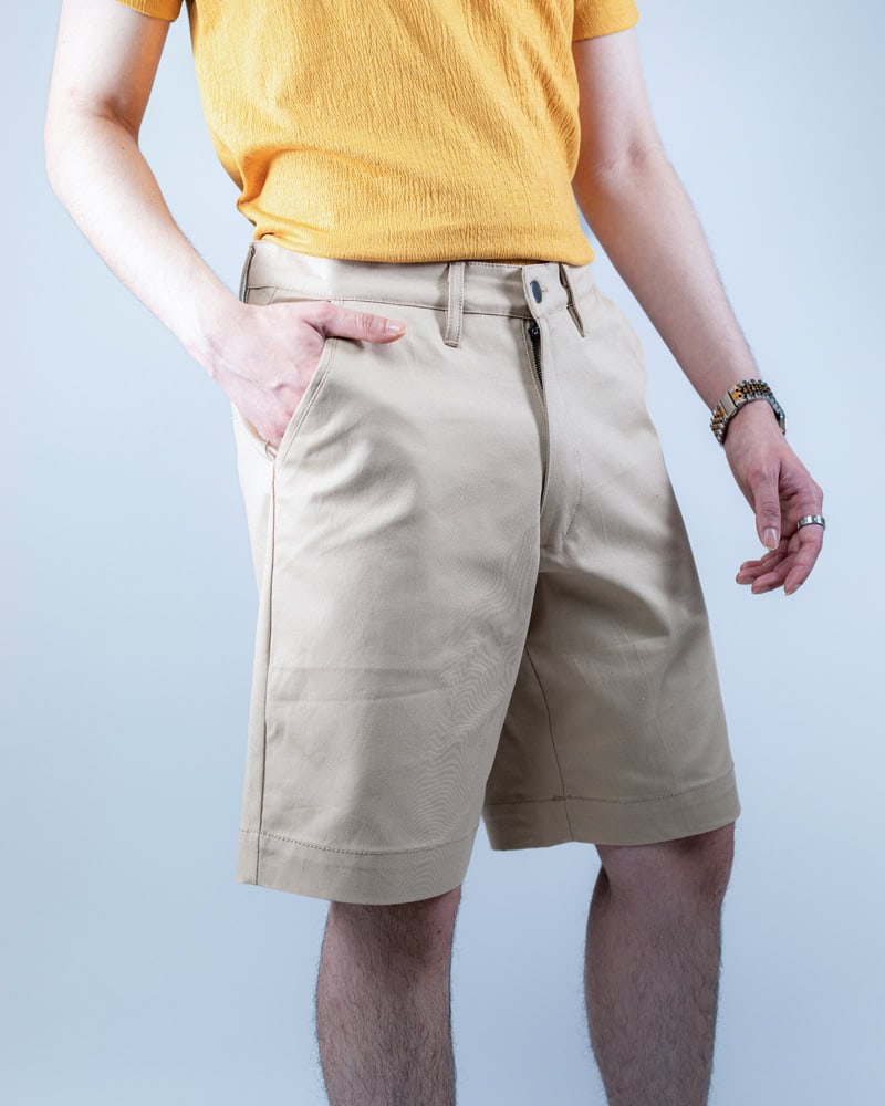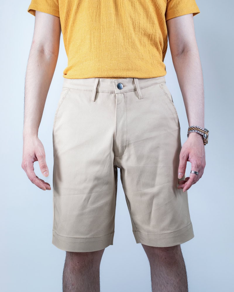 Crafted from lightweight gabardine fabric, these shorts ensure maximum breathability, allowing air to flow freely and keeping you feeling fresh throughout the day. The fabric’s excellent moisture-wicking properties keep sweat at bay, ensuring a dry and comfortable experience even on the hottest of summer days. The “Summer Shorts in Cream” feature a tailored fit that flatters all body types. The length hits just above the knee, striking the perfect balance between casual and sophisticated. The classic cream color adds a touch of timeless elegance, making these shorts suitable for any occasion, whether it’s a beach outing, a backyard barbecue, or a weekend brunch.