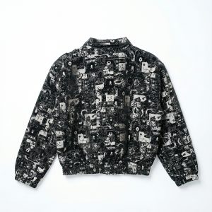 Navigate the concrete jungle in the Textured Bomber Jacket in Black by Gorur Ghash. This statement piece features an intricate woven pattern that brings an artistic edge to your streetwear rotation. The regular fit and dropped shoulders offer that relaxed, effortless silhouette essential for downtown living.