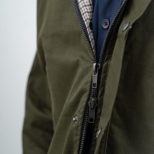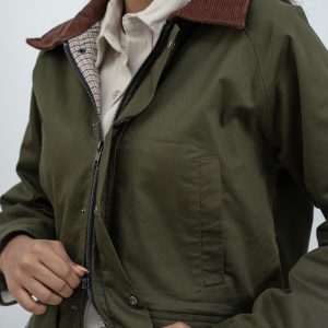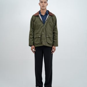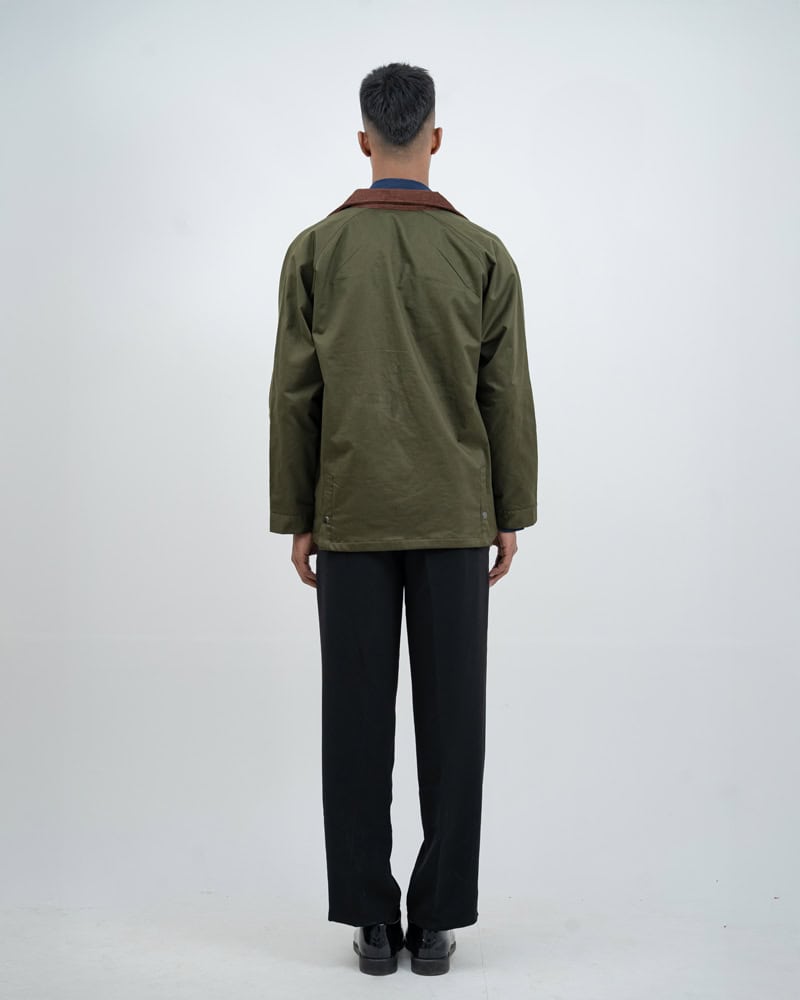 - Design: Corduroy collar, Two-way metal zipper, Buttoned double back vent