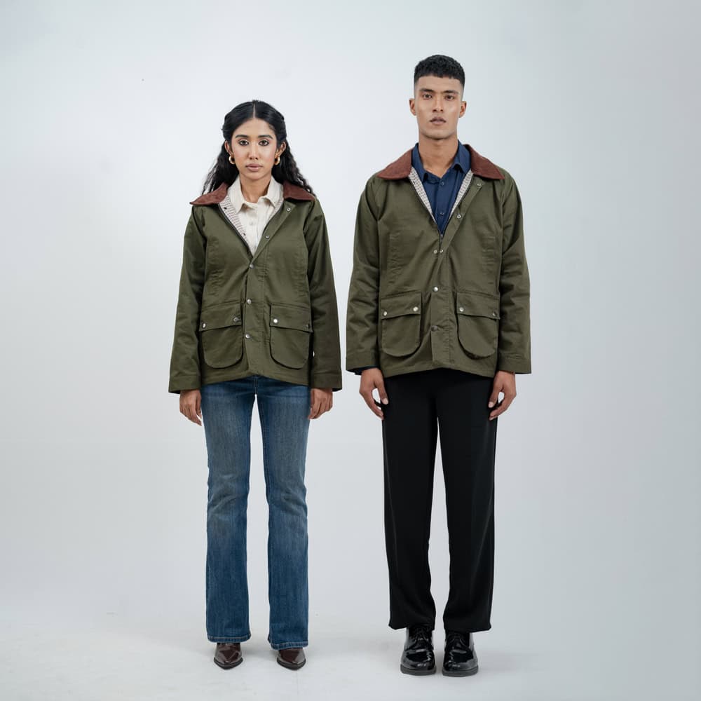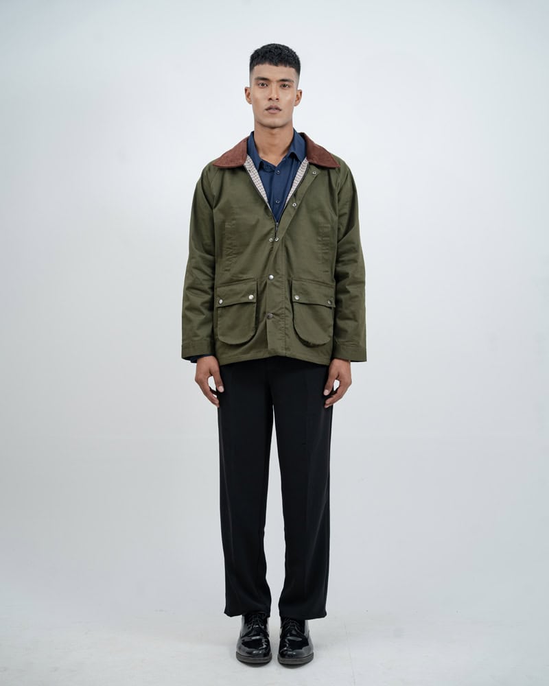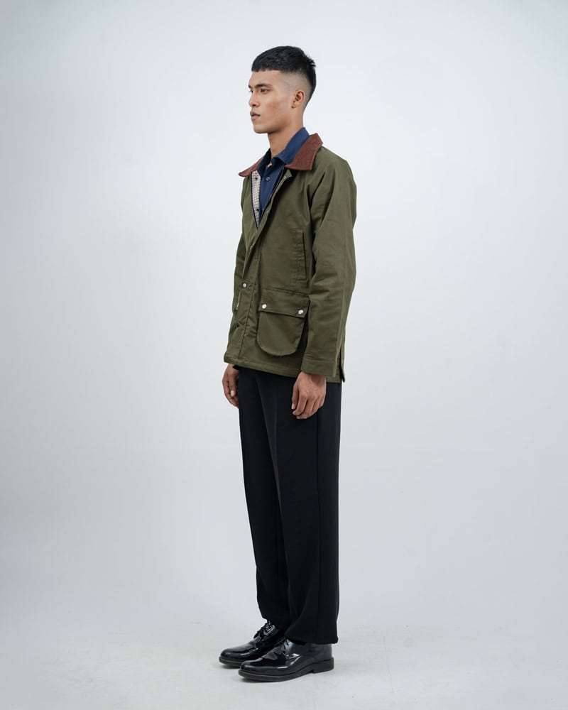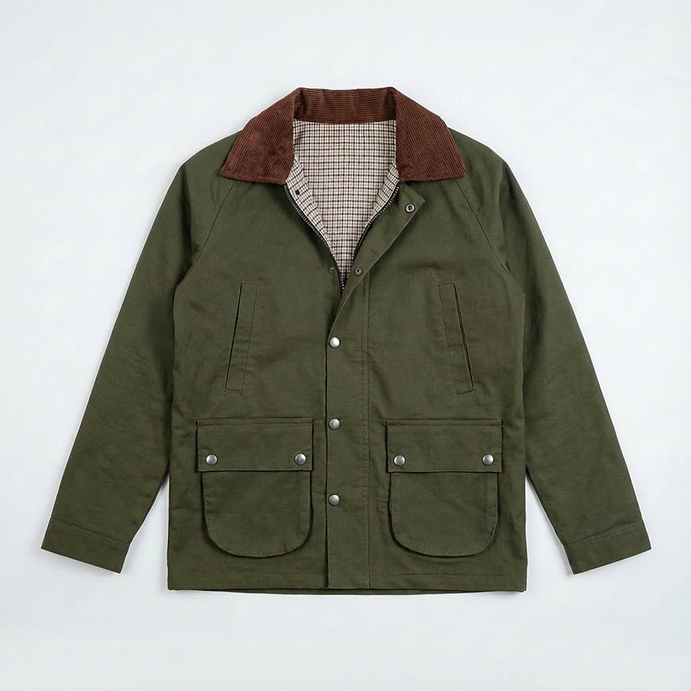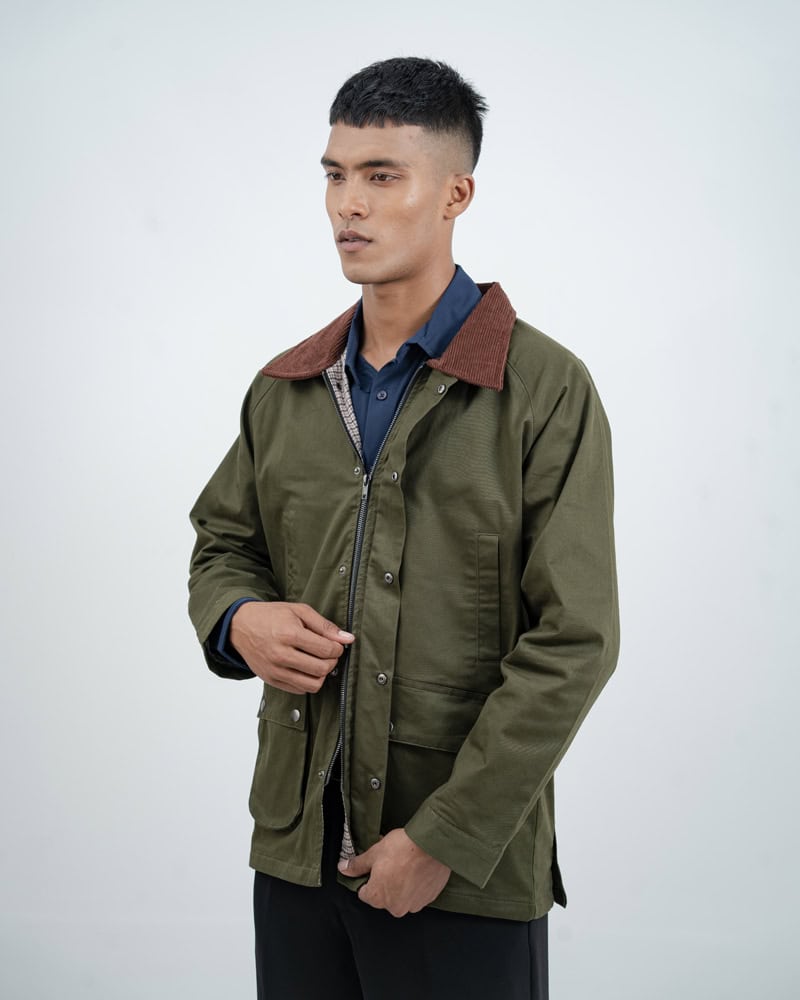 A modern classic reimagined in the Twill Chore Jacket with Flannel Inner in Green, a versatile essential that combines classic craftsmanship with everyday comfort. The rich green tone and signature corduroy collar add a subtle retro touch, perfect for casual days or smart-casual hangs.