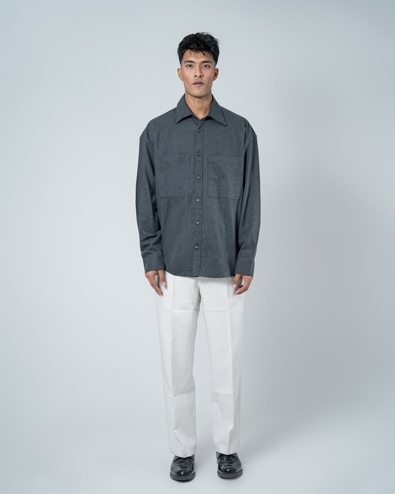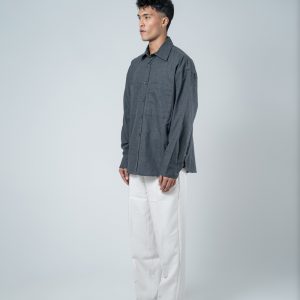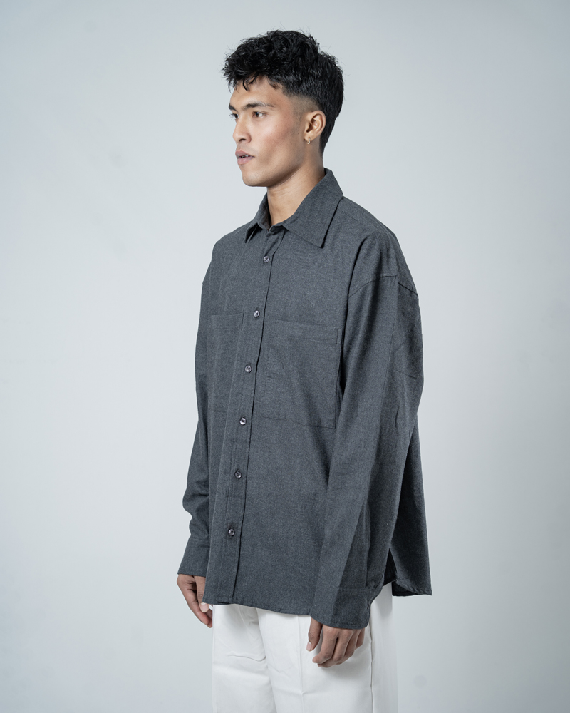 The Unisex Long Sleeve Oversized Shirt in Grey by Gorur Ghash is your new anchor for effortless earth-toned street style. This isn’t just a basic button-down; it’s a masterclass in relaxed proportions and rugged utility.