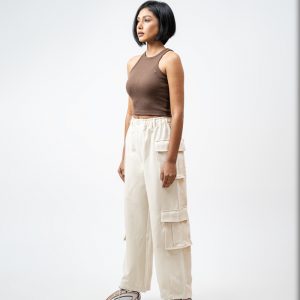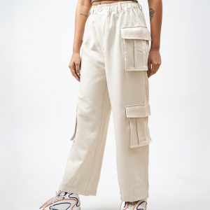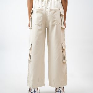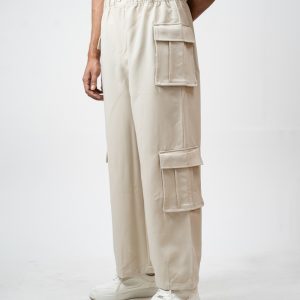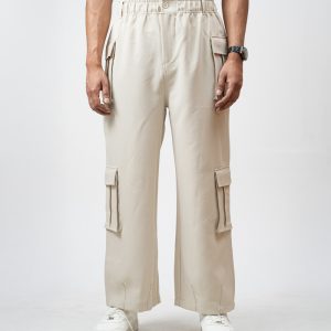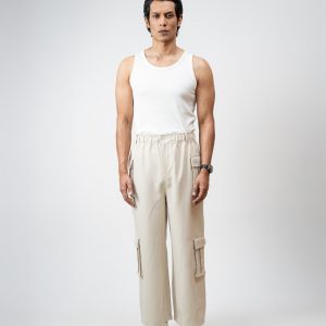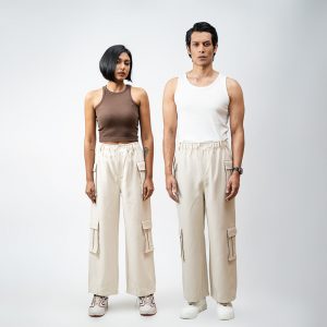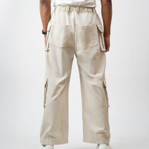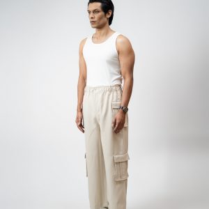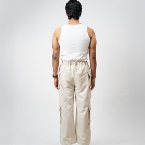 The baggy fit you have been hunting for is finally here. The Utility Cargo Pants in Off White by Gorur Ghash are engineered for pure effortless style. We designed them with a roomy and relaxed unisex cut that drapes perfectly. They are crafted from a durable yet super comfortable twill-patterned polyester. The smart hybrid waist features elastic for comfort but includes belt loops and a proper zip and button closure for a secure fit.