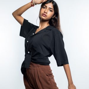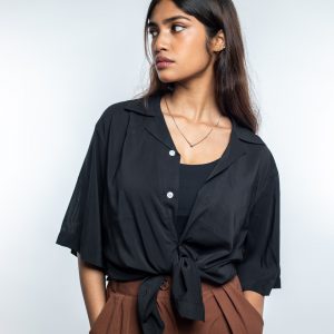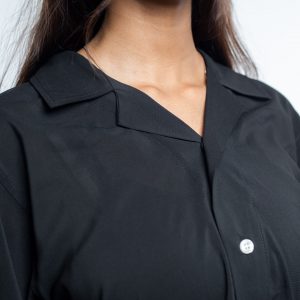 Introducing the Women’s Black Oversized Drop Shoulder Cuban Shirt by Gorur Ghash– the perfect way to show off your style and personality while staying comfortable!