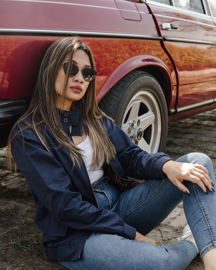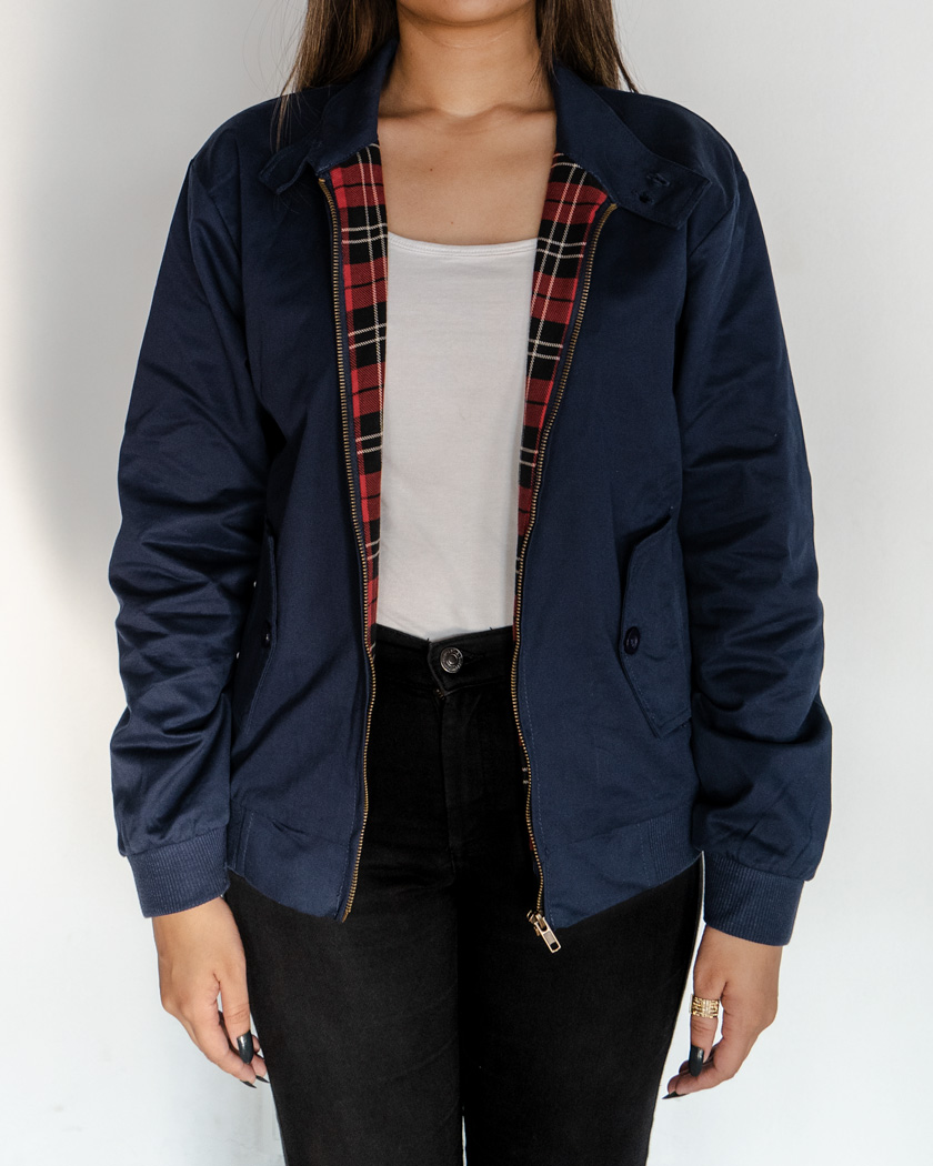 Lightweight yet substantial, this Harrington is perfect for transitional weather and day-to-night dressing. Whether you’re heading out for a casual evening or layering up for a cool morning, it adapts with ease and intention. The Women’s Harrington Jacket in Navy Blue is a modern classic designed with purpose, built to last, and made to move with you.